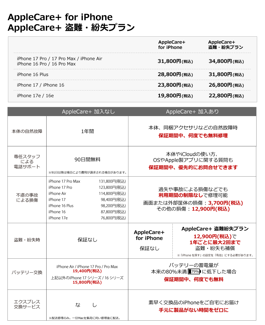 仕上げの選択 iPhone 17e 256GB ソフトピンク、ホワイト、ブラック99,800円 (税込) iPhone 17e 512GB ソフトピンク、ホワイト、ブラック134,800円 (税込) iPhone 17 Pro Max 256GB シルバー、コズミックオレンジ、ディープブルー194,800円 (税込) iPhone 17 Pro Max 512GB シルバー、コズミックオレンジ、ディープブルー229,800円 (税込) iPhone 17 Pro Max 1TB シルバー、コズミックオレンジ、ディープブルー264,800円 (税込) iPhone 17 Pro Max 2TB シルバー、コズミックオレンジ、ディープブルー329,800円 (税込) iPhone 17 Pro 256GB シルバー、コズミックオレンジ、ディープブルー179,800円 (税込) iPhone 17 Pro 512GB シルバー、コズミックオレンジ、ディープブルー214,800円 (税込) iPhone 17 Pro 1TB シルバー、コズミックオレンジ、ディープブルー249,800円 (税込) iPhone Air 256GB スペースブラック、クラウドホワイト、ライトゴールド、スカイブルー159,800円 (税込) iPhone Air 512GB スペースブラック、クラウドホワイト、ライトゴールド、スカイブルー194,800円 (税込) iPhone Air 1TB スペースブラック、クラウドホワイト、ライトゴールド、スカイブルー229,800円 (税込) iPhone 17 256GB ブラック、ホワイト、ミストブルー、ラベンダー、セージ129,800円 (税込) iPhone 17 256GB ブラック、ホワイト、ミストブルー、ラベンダー、セージ164,800円 (税込) iPhone 16e 128GB ブラック、ホワイト99,800円 (税込) iPhone 16e 256GB ブラック、ホワイト114,800円 (税込) iPhone 16e 512GB ブラック、ホワイト144,800円 (税込) iPhone 16 Plus 128GB ブラック、ホワイト、ピンク、ウルトラマリン、ティール139,800円 (税込) iPhone 16 Plus 256GB ブラック、ホワイト、ピンク、ウルトラマリン、ティール154,800円 (税込) iPhone 16 Plus 512GB ブラック、ホワイト、ピンク、ウルトラマリン、ティール184,800円 (税込) iPhone 16 128GB ブラック、ホワイト、ピンク、ウルトラマリン、ティール124,800円 (税込) iPhone 16 256GB ブラック、ホワイト、ピンク、ウルトラマリン、ティール139,800円 (税込) iPhone 16 512GB ブラック、ホワイト、ピンク、ウルトラマリン、ティール169,800円 (税込)